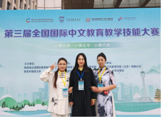 From November 21 to 23, 2025, the 3rd National International Chinese Language Education Teaching Skills Competition, hosted by the Shaanxi International Chinese Language Education Research Association and Xi'an International Studies University, came to a successful conclusion.Students fromtheuniversityperformed excellently in the competition and finally won the national Excellence Award. This is the first time that students from our university's Chinese International Education major have participated in this competition.